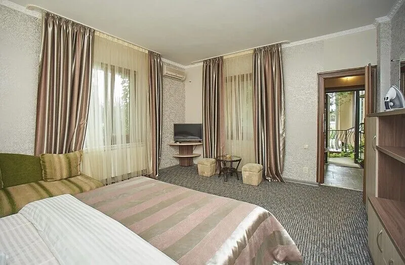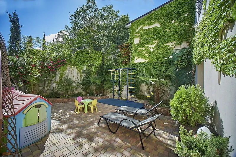 - Частная территория, окруженная парковой зоной санатория «Алушта», где царит атмосфера спокойствия и уединения.