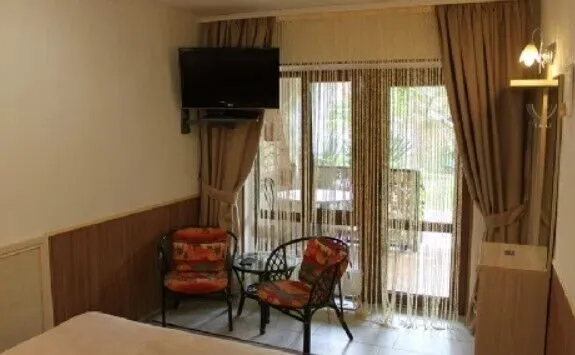- Комфортные номера с собственным балконом, оборудованные всем необходимым: горячая вода, душ, туалет, телевизор, холодильник, спутниковое телевидение, кондиционер.