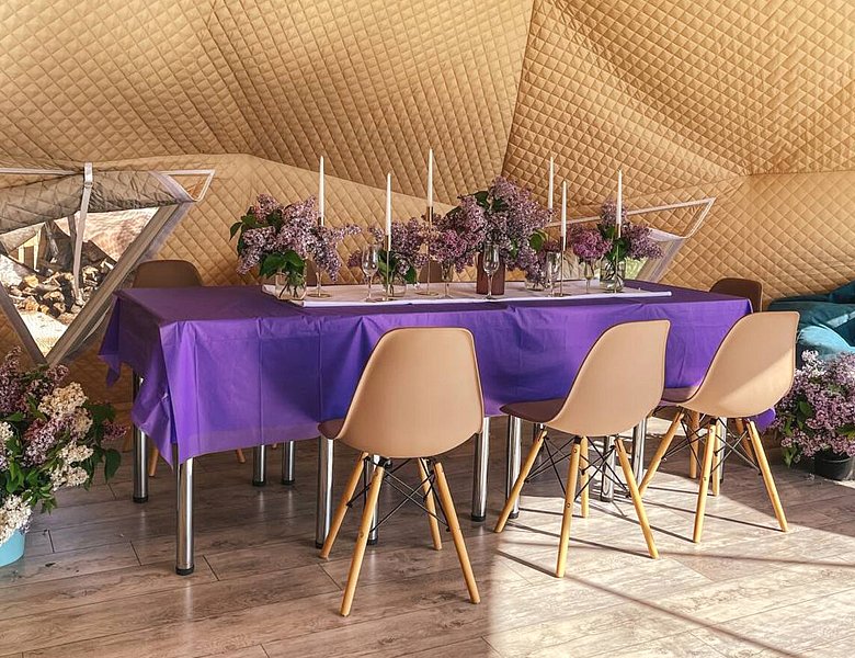 Путешествие с семьейУютное атмосферное место!В этом месте впечатлило все! Начиная с визитных сюрпризов для всей семьи, приветственных печенек с предсказанием, поздравлением зайчика, и моря других приятных сюрпризов от глэмпинга! Большую роль играет отзывчивый персонал(Максим,Настя,Аня), чувствуешь себя как дома! Сами шатры новые,стильные,тёплые (мы были в холод) , даже простынь подогреваемая! Ходили в баньку- отлично попарились! Прекрасная дегустация вин позволила приятно и познавательно провести время. Небольшая, но отличная детская анимация порадовала нашу дочку! Всем будем советовать это место!