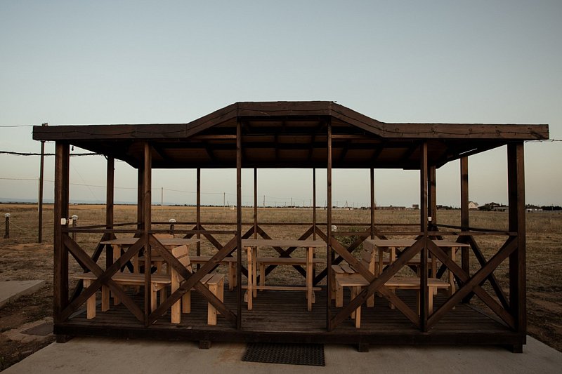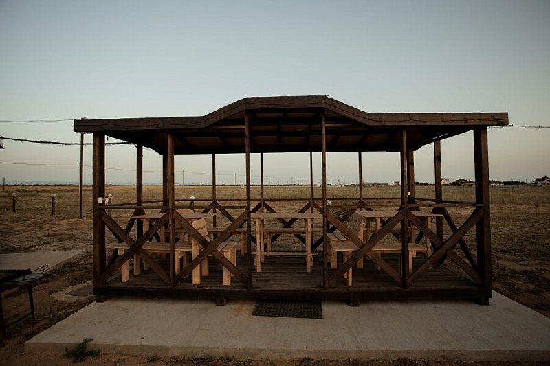 Глэмпинг-отель предоставляет крытую беседку с большим столом и скамейками. Основная цель беседки заключается не только в защите от дождя и яркого солнца, но и в создании комфортной атмосферы для обеда и продолжения приятных бесед на улице.