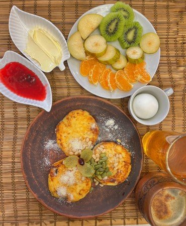 На обед и ужин гости могут насладиться сытными или легкими блюдами, которые идеально подходят для восстановления сил после активного отдыха или же способствуют расслаблению после насыщенного дня. Каждое блюдо в меню готовится с любовью и вниманием к деталям, чтобы гость мог насладиться не только вкусом, но и атмосферой уюта и тепла.