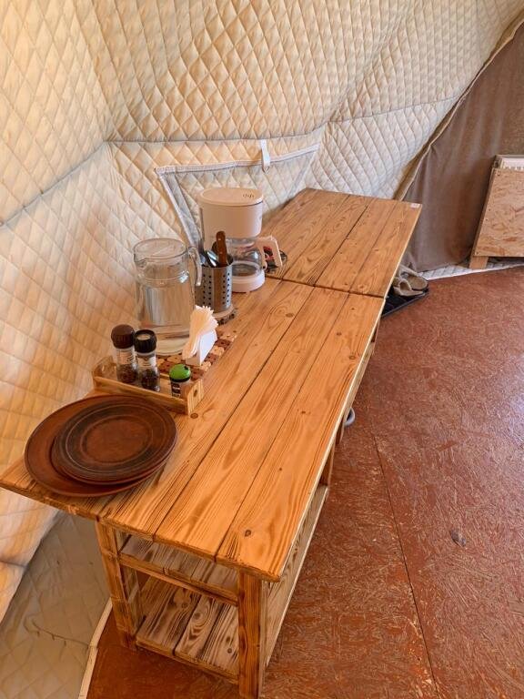 На территории глэмпинга выделена специальная зона для мангала, где вы можете приготовить шашлыки. Это замечательное место для того, чтобы насладиться процессом жарки на свежем воздухе. Мангал и решетки предоставляются бесплатно! Вы можете приобрести уголь и разжигатель, однако использование дров на территории глэмпинга запрещено.