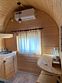 Гриль-дом выполнен из натурального дерева и обеспечивает тепло благодаря системе отопления. Он может вместить до 10 человек и оснащен микроволновой печью, газовой плитой и встроенной раковиной. Также есть возможность приобрести уголь и жидкость для розжига.