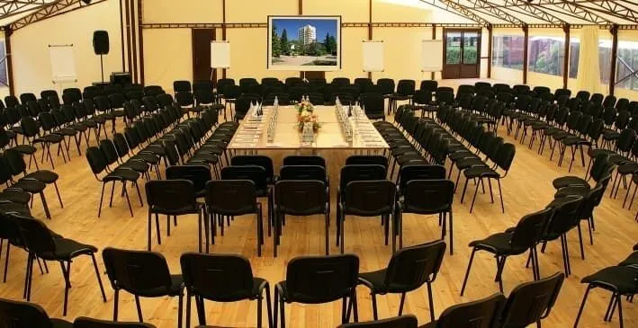 Конференц-зал "GOLDEN RESORT" спроектирован под проведение конференций, тренингов и совещаний с различными вариантами размещения. Удобная рассадка театром, позволит комфортно разместить в зале до 100 человек, а профессиональное техническое оснащение поможет провести Ваше мероприятие на высочайшем уровне.Техническое обеспечение: