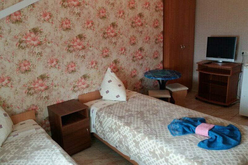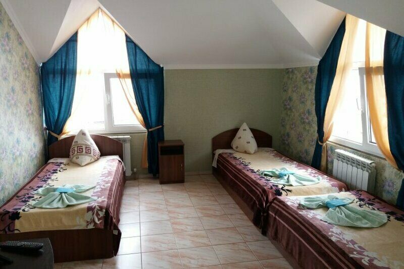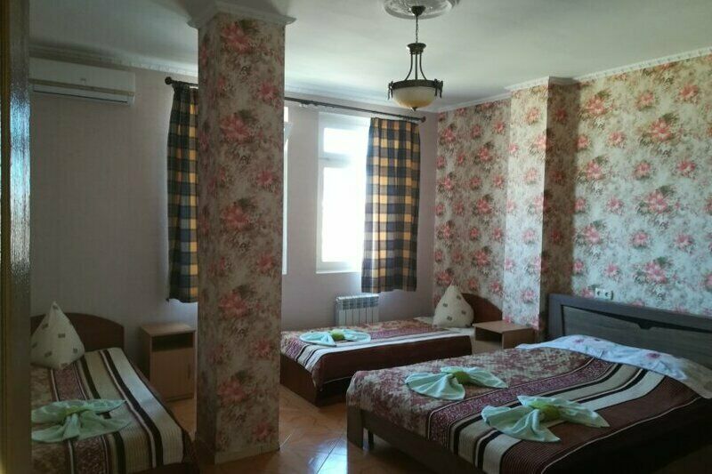 Гостевой дом разместился на благоустроенной территории с внутренним двориком, в котором высажены южные растения, установлены небольшие фонтанчики. Жилой фонд включает в себя 15 номеров разной категории комфорта. Везде есть собственный санузел с душем, кондиционер, телевизор, холодильник. В некоторых комнатах предусмотрены балконы.