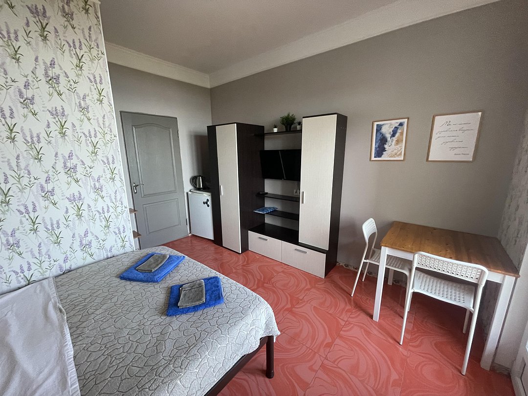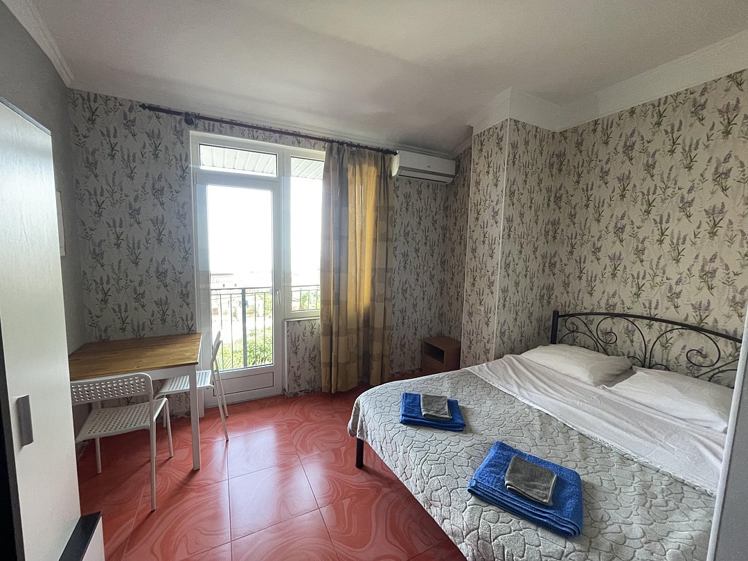 2-х местный номер оборудован всем необходимым для комфортного проживания: кровать, тумба прикроватная, шкаф, комод, стол, стулья, тв, wifi, холодильник, кондиционер и сан узел ( душ, унитаз, раковина).В номере
