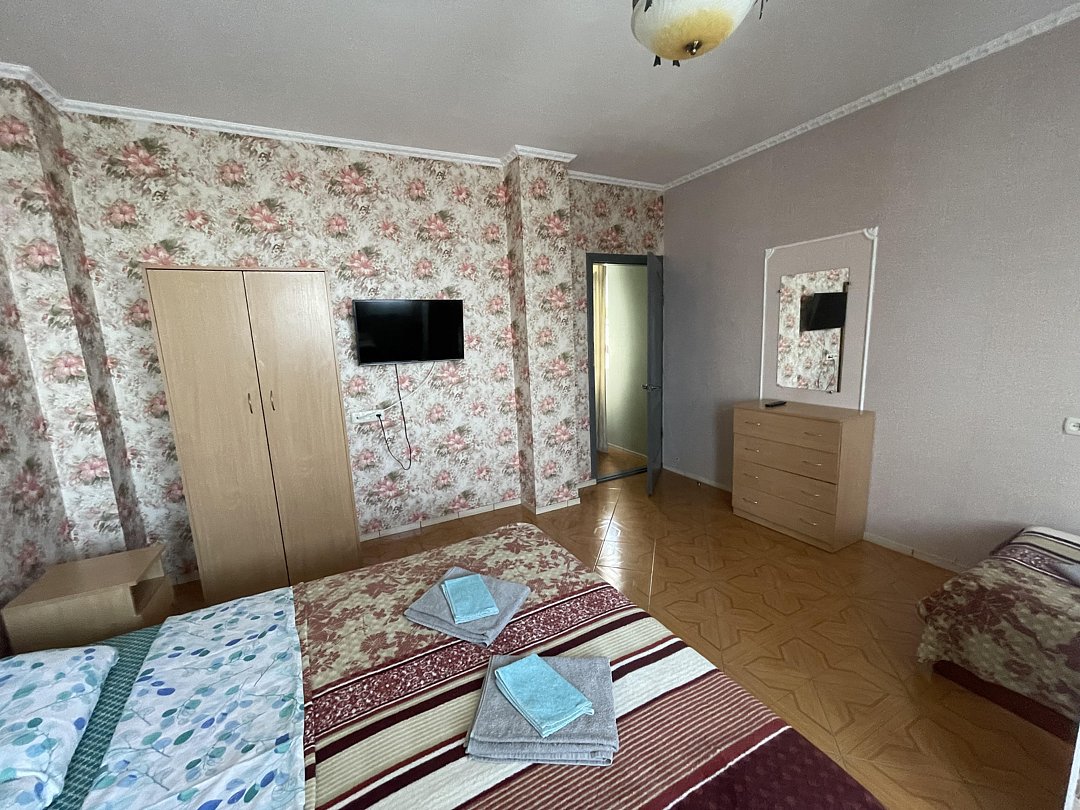 4-х местный номер оборудован всем необходимым для комфортного проживания: кровать, тумба прикроватная, шкаф, комод, стол, стулья, тв, wifi, холодильник, кондиционер и сан узел ( душ, унитаз, раковина).В номере