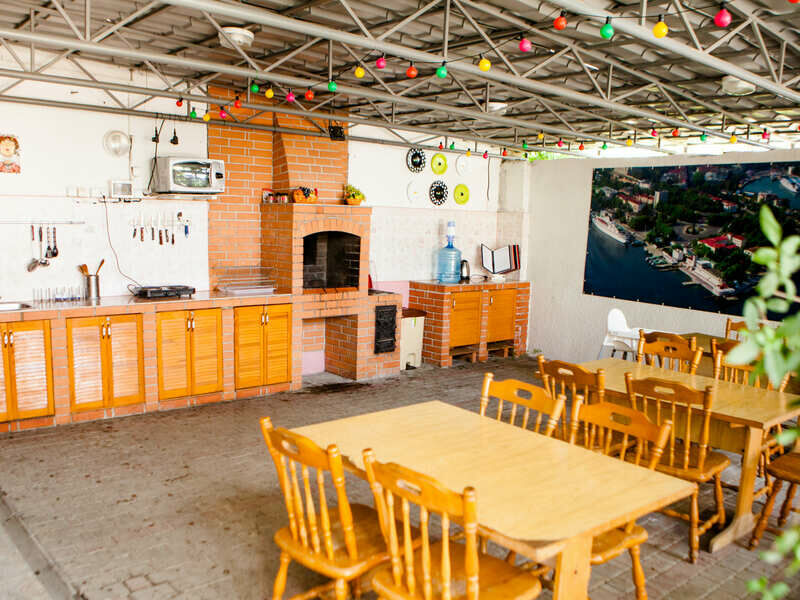 Путешествие с семьейЗамечательное место для семейного отдыха.Выражаем благодарность Татьяне Александровне и всему персоналу гостевого дома "Башня" в Учкуевке. Хочется отметить, что все очень доброжелательные и вежливые, поэтому сразу создается атмосфера хорошего отдыха и отличного настроения. Мы отдыхали семьёй (4 чел), брали два двухместных номера, один на первом этаже для детей-подростков и второй номер на втором этаже для себя(позже узнали о существовании семейных номеров). Оба номера очень комфортабельные, имеют хорошие led-тв, чайник, кондиционер и очень вместимый холодильник и прекрасные кровати с очень хорошими матрацами. Так же хочу отметить туалетную комнату с хорошей сантехникой и просторной душевой! Не могу не сказать о уютном и зелёном дворике со множеством зон отдыха с диванчиками и конечно о великолепной мангальной зоны с красивым и функциональным мангалом.