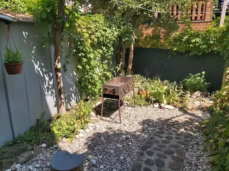 1-й этаж - двухкомнатный четырехместный номер стандарт с отдельной летней кухней во дворе и беседкой для обедов, отдельным входом.