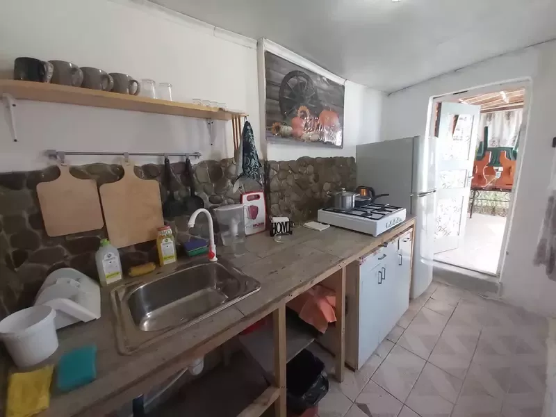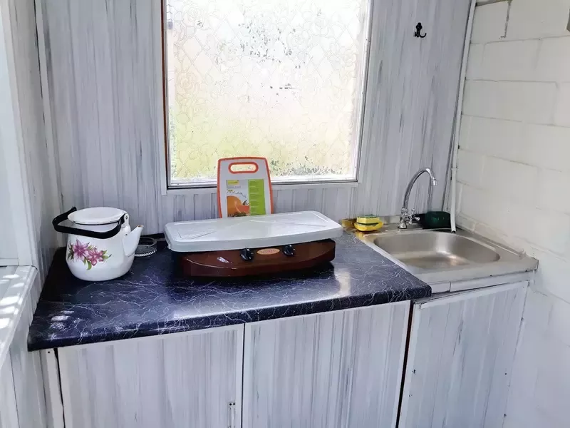 - кухня во дворе (холодильник, раковина, рабочий стол, посуда в комплекте, газовая плита);