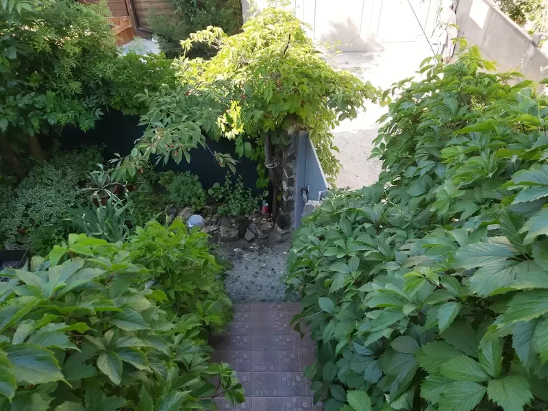 Территория дома огорожена, на ней есть беседка для обедов на свежем воздухе для первого этажа и терраса с мини-кухней у второго этажа. Автомобиль можно поставить на стоянку в гараж рядом с домом.