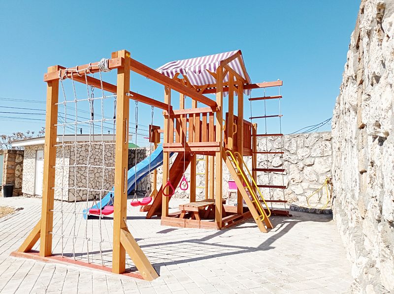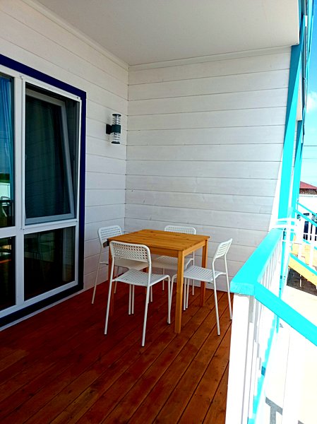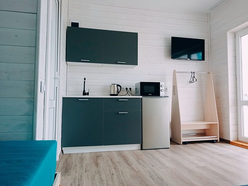 В каждой студии есть своя кухня, санузел, душ, просторная терраса с обеденной зоной, отдельный вход в каждый номер, витражные окна. Рядом с гостевым домом находится столовая, в которой можно заказать сытный завтрак и комплексный обед.