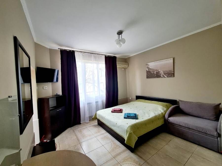 В номере: кровати односпальные, кровать двуспальная, диван-кровать, шкаф, комод, журнальный столик, стулья, стол, вешалка, кондиционер, Wi-Fi интернет, телевизор, спутниковое ТВ, кухонный стол, обеденный стол, посуда, СВЧ, холодильник, электрочайник, утюг, фен, санузел и душ в номере.В гостиничном номере