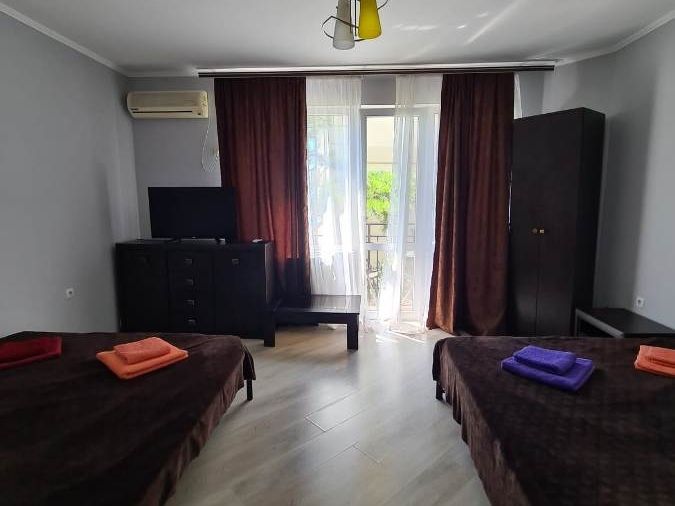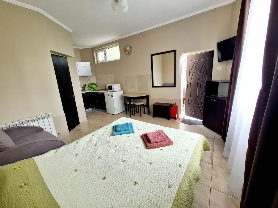 В шаговой доступности от гостевого дома, находится все необходимое для комфортного отдыха: магазины, небольшой рынок, кафе и ресторанчики, палатки с сувенирами и пляжным инвентарем и многое другое.