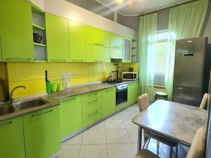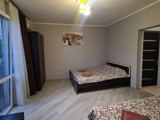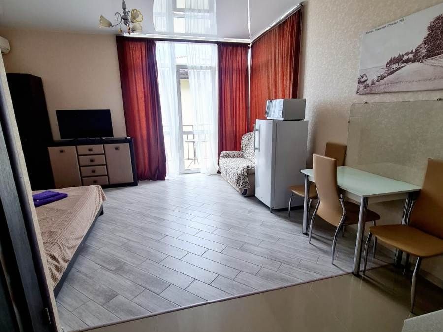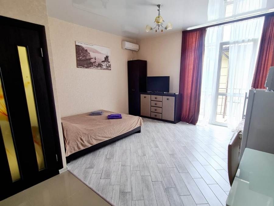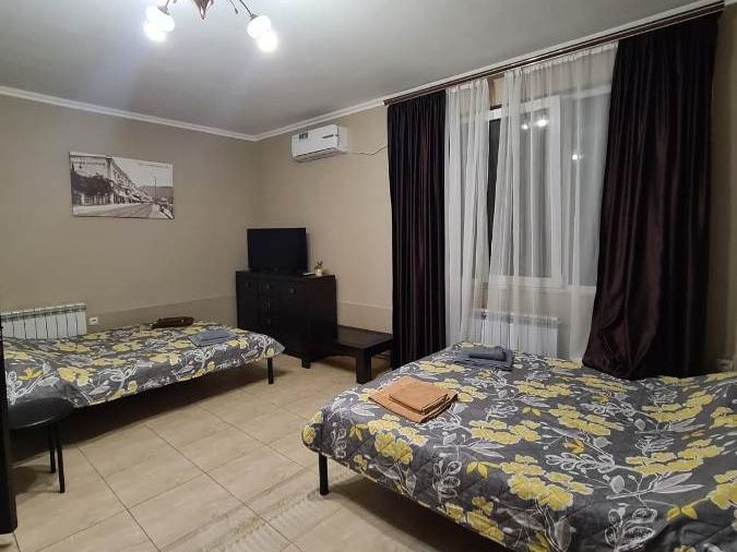 В номере: кровати односпальные, кровать двуспальная, кресло, кресло-кровать, шкаф, комод, стулья, вешалка, балкон, отопление (теплый пол), сплит-система, кабельное ТВ, телевизор ЖК, Wi-Fi интернет, кухонный стол, обеденный стол, посуда, СВЧ, холодильник, электроплита, электрочайник, утюг, фен, санузел и душ в номере.В гостиничном номере