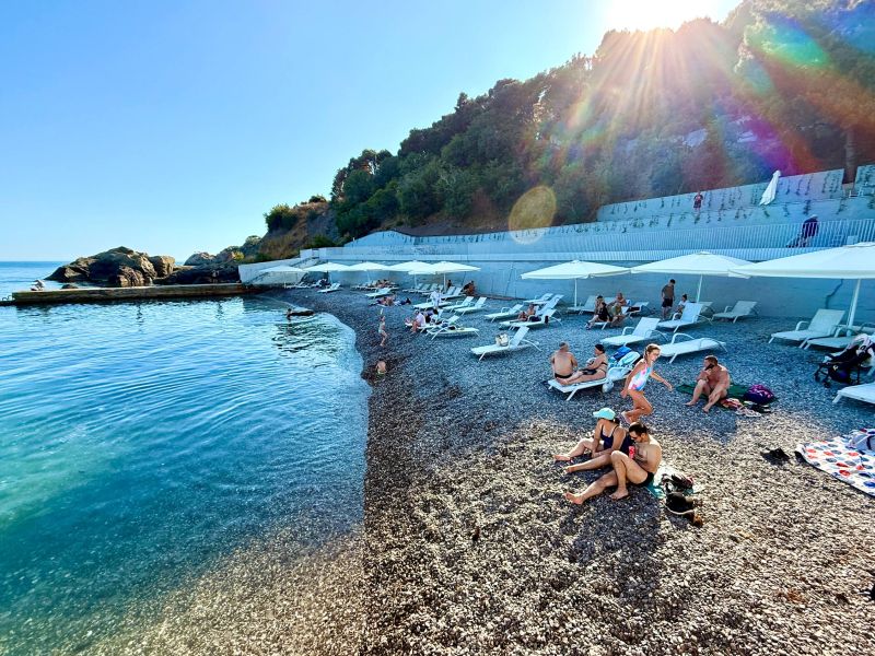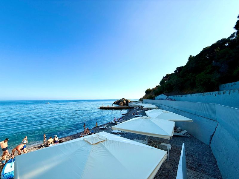 Для семей с детьми предусмотрена детская площадка на территории. Пляж «Графские купальни» находится недалеко, что удобно для пляжного отдыха.