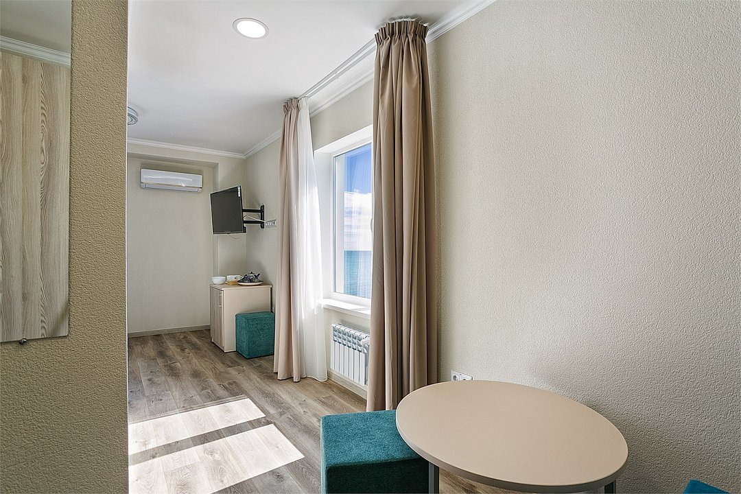 Однокомнатный, 2-х местный стандартный номер с видом на море. Балкон с мебелью для отдыха.Дополнительное место-раскладушка.Услуги и удобства
