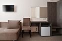 Компактный смарт номер с французским балконом и видом на южную сторону. При небольшой площади номер оснащён всем необходимым для комфортного отдыха. Площадь: 10-12 м2. Две 1,5 спальные кровати, прикроватные тумбы, шкаф, настольная поверхность. Санузел совмещённый, душевая кабина или поддон со шторкой, туалет, фен. Полотенца (для лица, банное, для ног), мыло, шампунь, гель, полотенцесушитель. Оборудование: телевизор, кондиционер, безлимитный Wi-Fi , барный холодильник, набор посуды (тарелка, стаканы). Покрытие – ковролин.Услуги и удобства