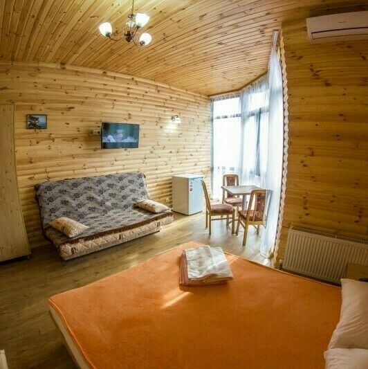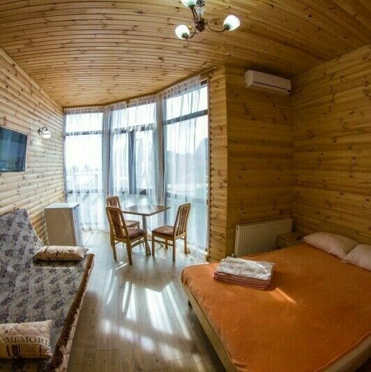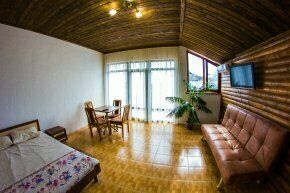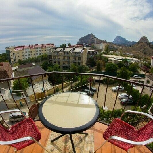 Двуспальная кровать, диван, холодильник, телевизор, кондиционер, санузел с душевой кабиной. По просьбе предоставляются утюг и чайник. У каждого номера имеется балкон, откуда открывается отличный вид на Генуэзскую крепость.