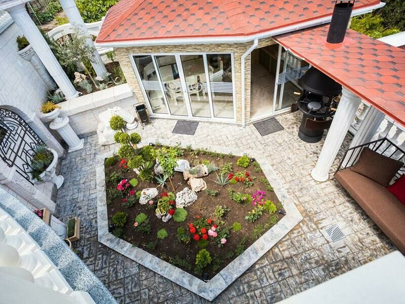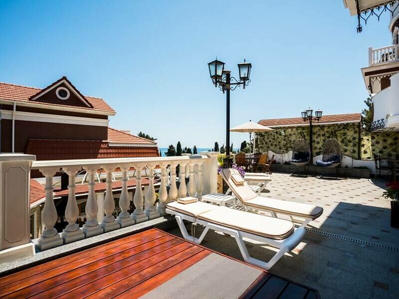 - зоной отдыха, из которой гости могут любоваться видом на море.