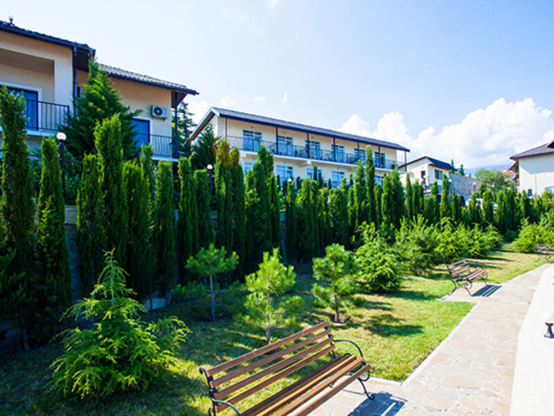 В распоряжении отдыхающих пансионата – бассейн на свежем воздухе, розовый сад, кафе с панорамной верандой, игровая комната и площадка для детей под открытым небом, собственная парковка и многое другое.