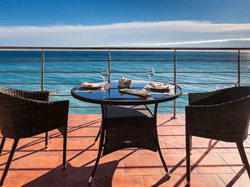 Люкс расположен на первом этаже имеет две террасы и собственную зеленую лужайку. Террасы оборудованы столом и двумя креслами для отдыха.