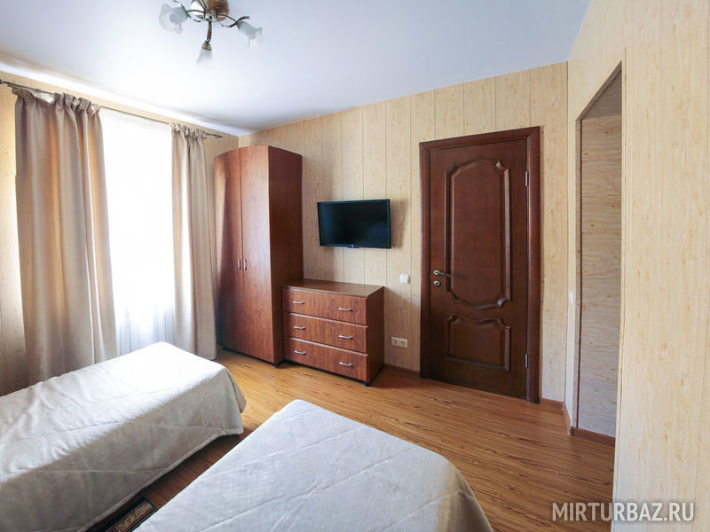 Комфортный двухместный номер площадью 11 кв.м. Две односпальные кровати. В номере: душ, туалет, спутниковое тв. Без кондиционера и холодильника.