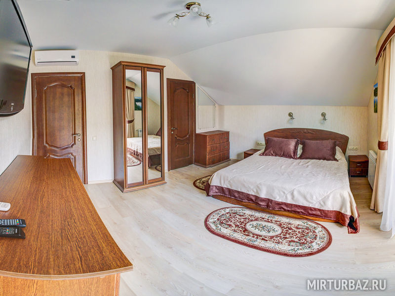 Комфортные номера с балконом площадью 12 кв.м., рассчитанные на двух человек. Двуспальная кровать. В номере – душ, туалет, кондиционер, спутниковое телевидение. Без холодильника.