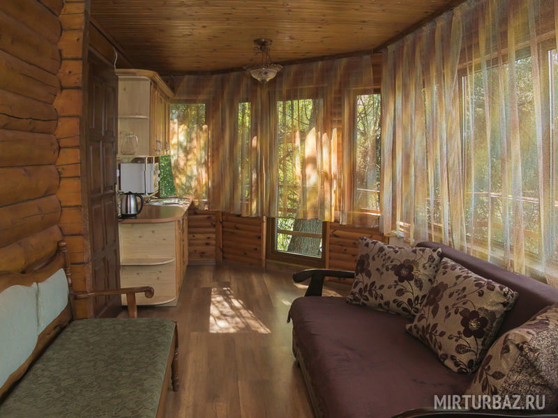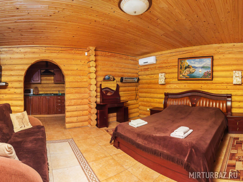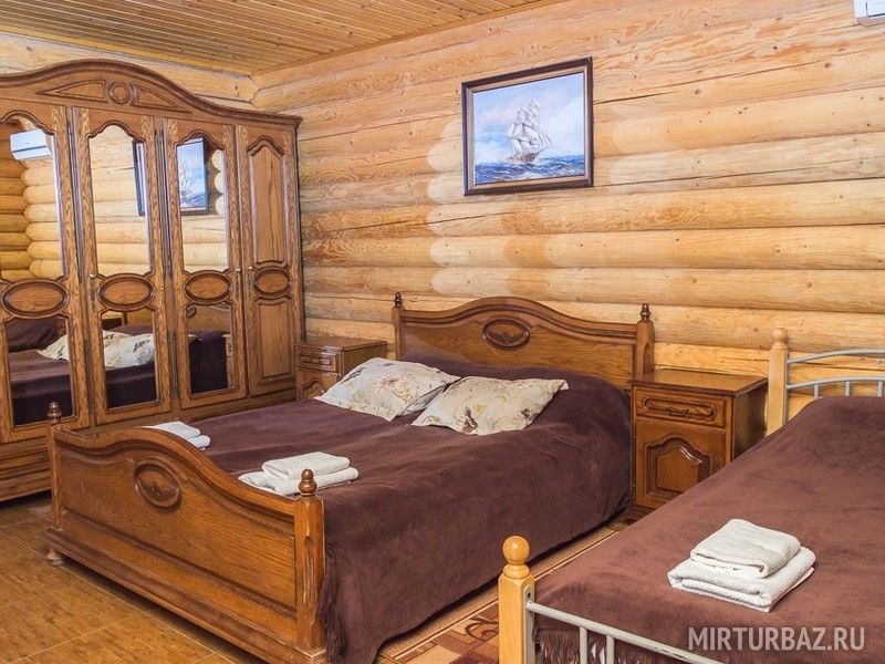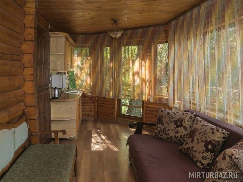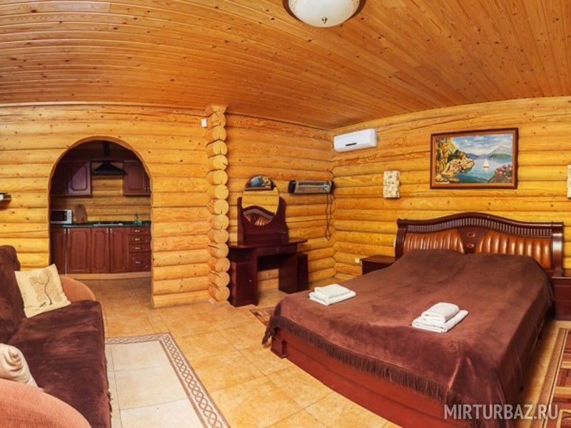 Двухэтажный бревенчатый коттедж на 4 основных спальных места (две двуспальные кровати) и 4 дополнительных (два кресла-кровати и раскладной диван) 8 спальных мест , застекленная кухня-веранда. Комплект посуды на 8 человек микроволновая печь . В инфраструктуру входят беседка и мангал.