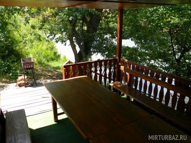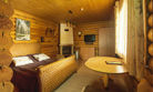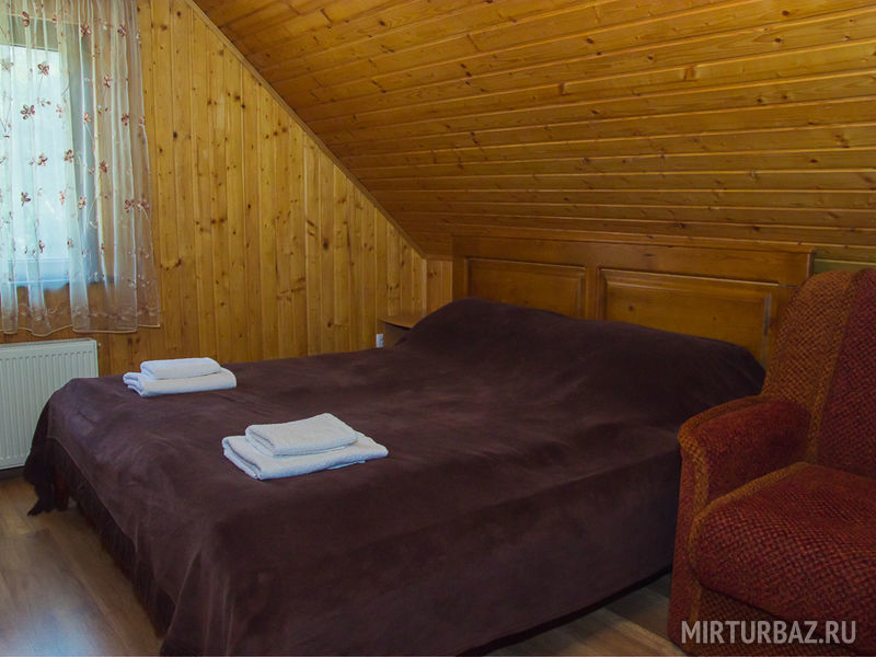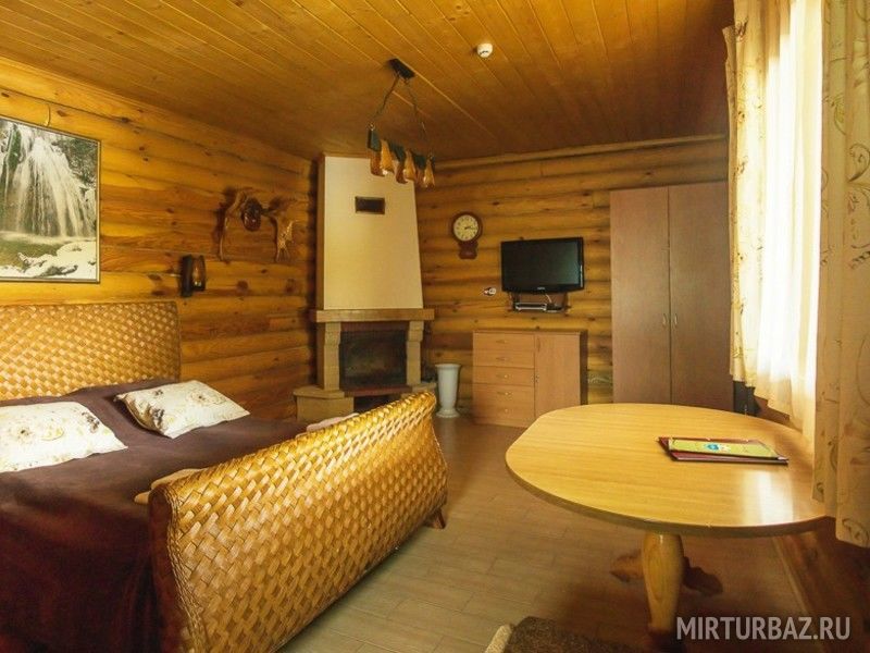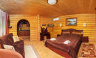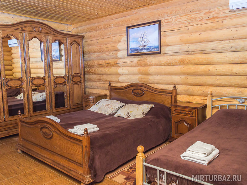 Бревенчатый домик со всеми удобствами, рассчитанный на небольшое количество человек. Спальных мест – 4 (одна двуспальная кровать, две односпальные). Комплект посуды на 4-х человек, возле дома есть мангал