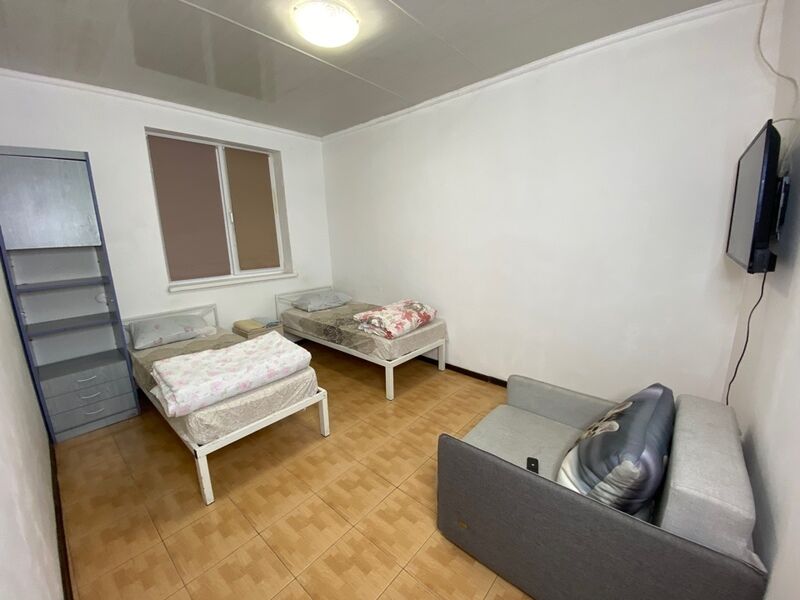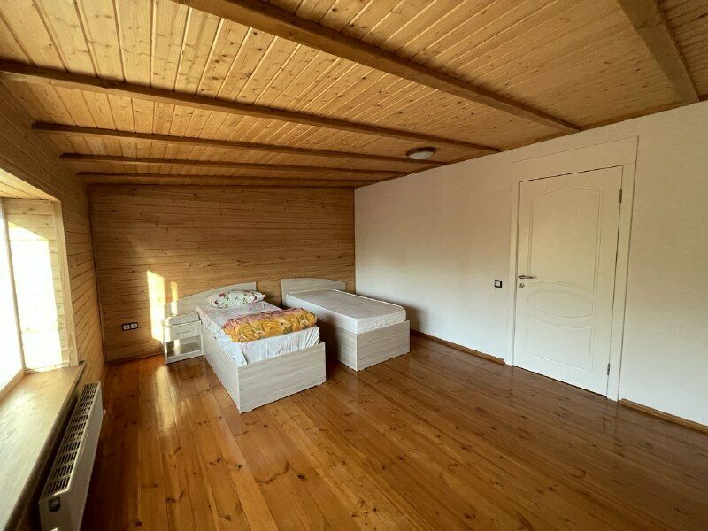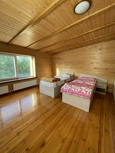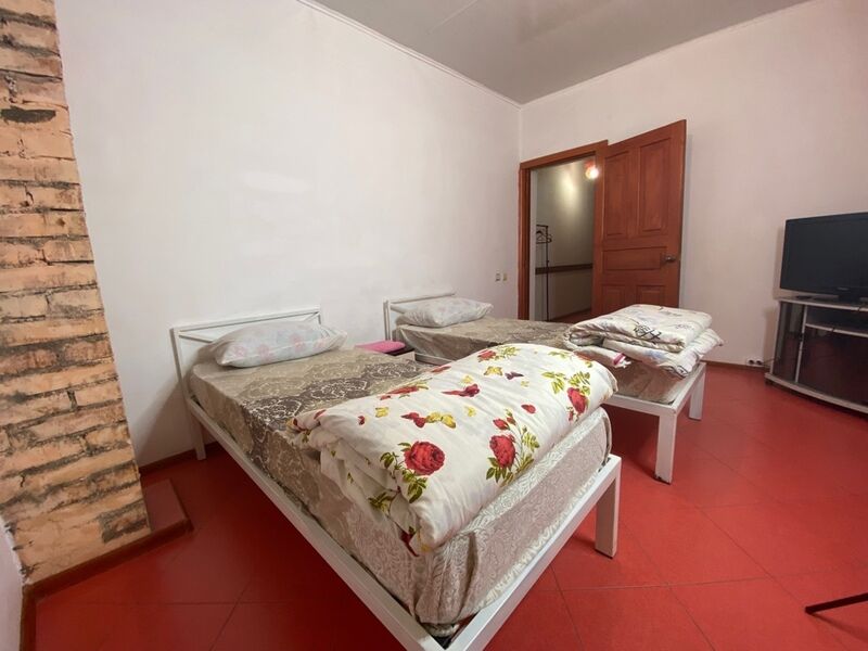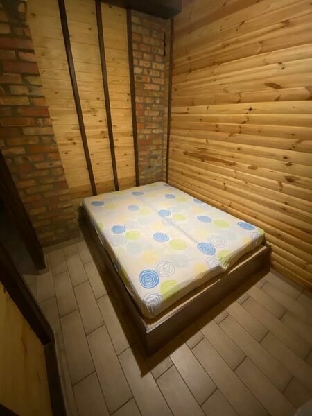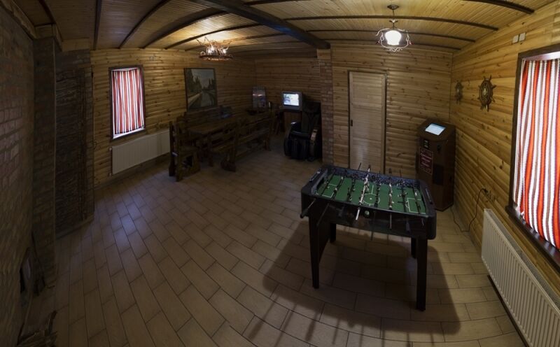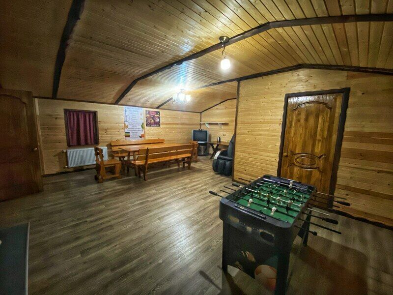 Двуспальная кровать - 1 шт. В номере: стол, лавки и стулья, телевизор, кресло, мини-футбол, баня, душ в номере.