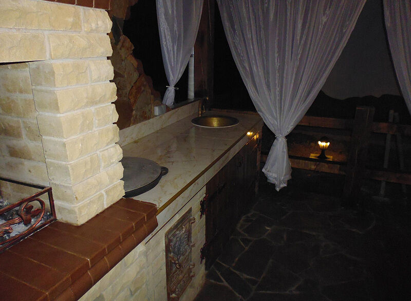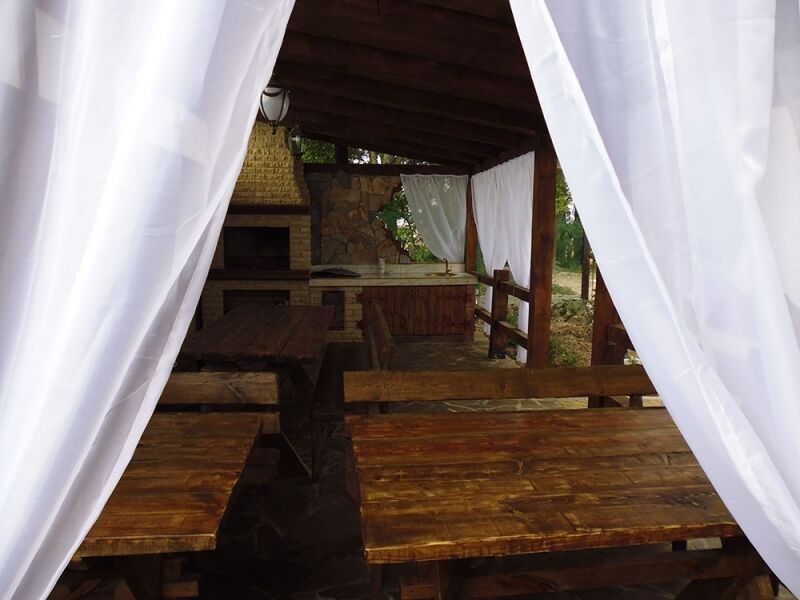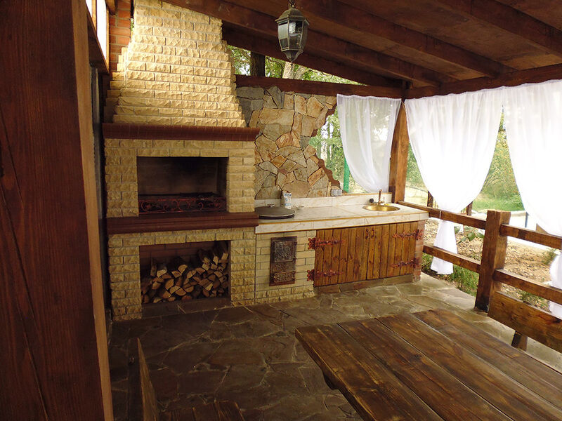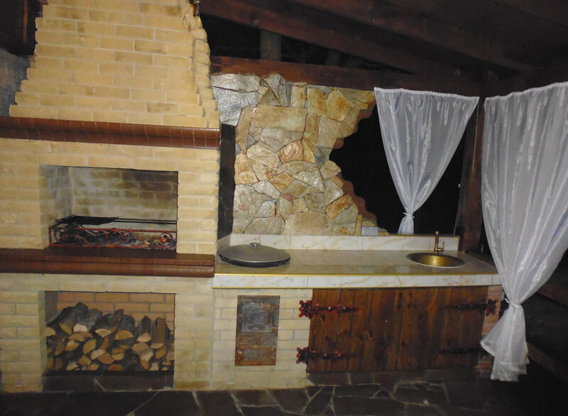 Беседка оборудована Барбекю из рваного камня, встроенным чугунным казаном в керамогранитную столешницу, мойкой, гриль. Музыка, встроенная в потолок, электричество, мангал с дровами помогут создать незабываемую атмосферу Вашего праздника.