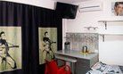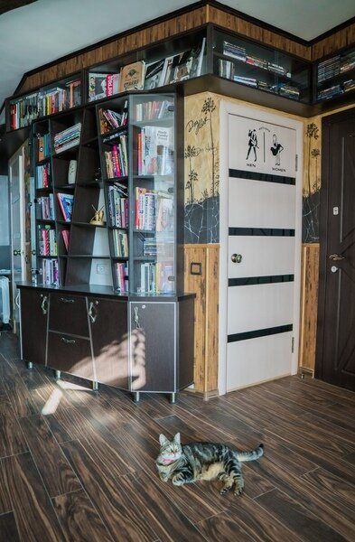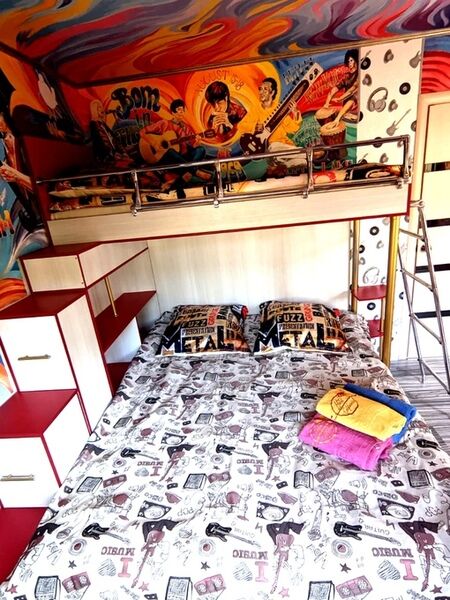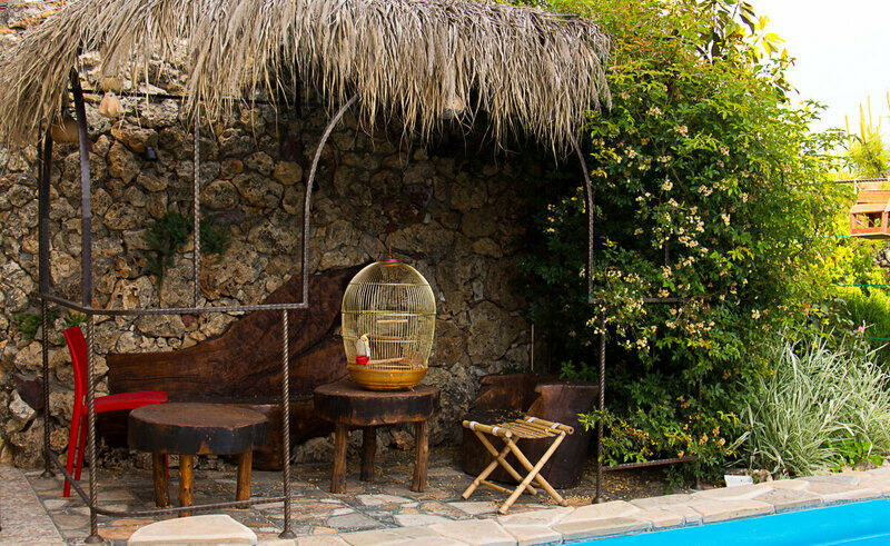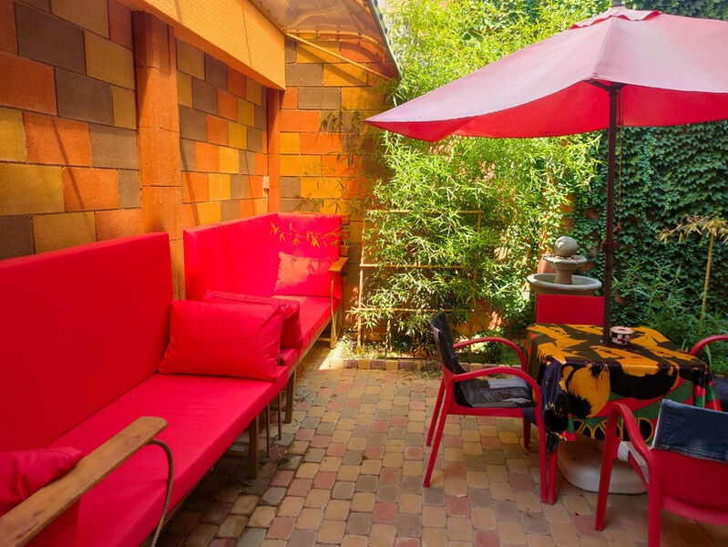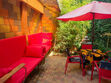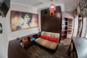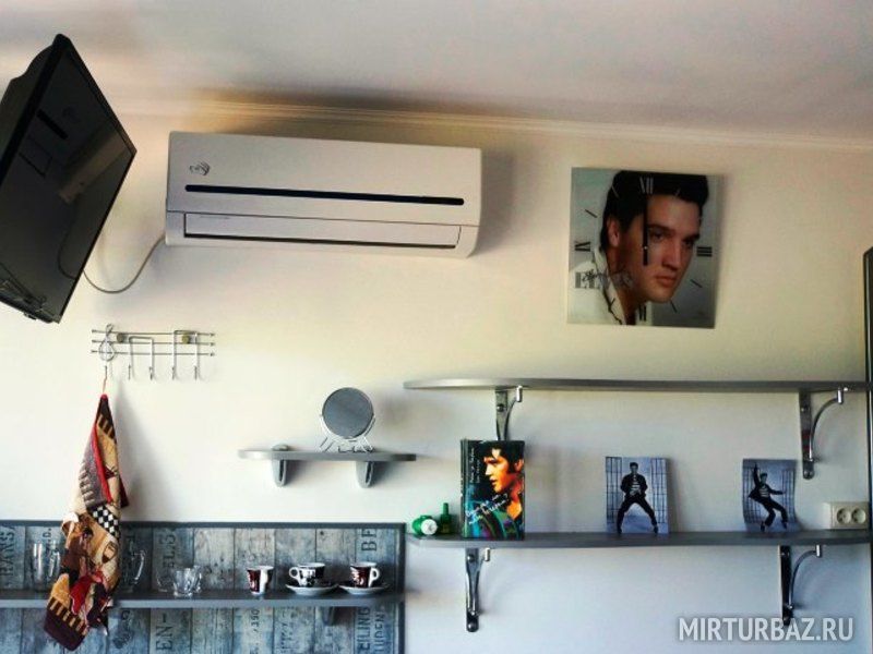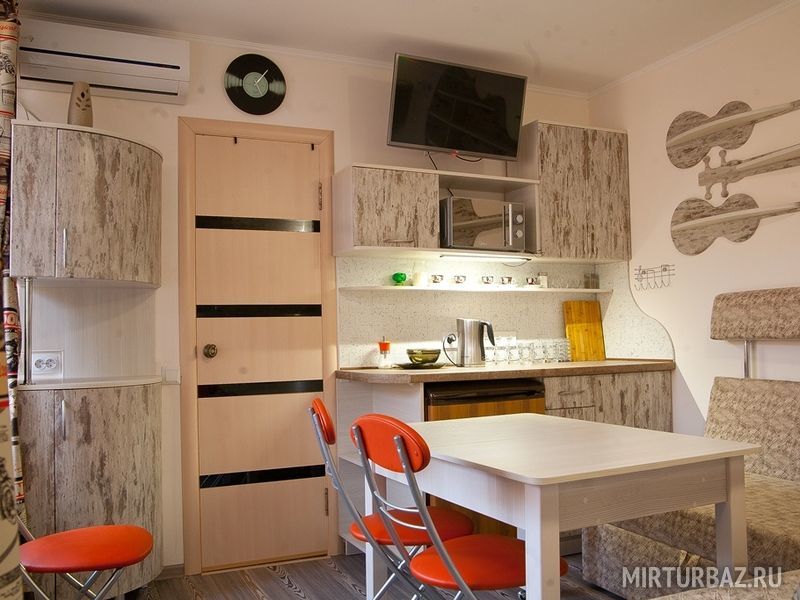 "The Doors". Студия-музей люкс 3-х местная, №1. (16,5 кв.м.) Отдельный вход, раскладной 2-х спальный диван , детское 1 спальное место "на антресолях" шкафа (до 60 кг), с\у в номере, кондиционер, кухонный уголок оборудован микроволновкой, холодильником и чайником, вся необходимая посуда, прихожая-потайной шкаф, рабочий стол, телевизор 3D smart, собственный дворик (36 кв.м.) с фонтанчиком и клумбой бамбука (элитного сорта Green Perfume), оборудован столиком, стульями, зонтом от солнца и лавками-диванами (2 доп. спальных места outdoor)