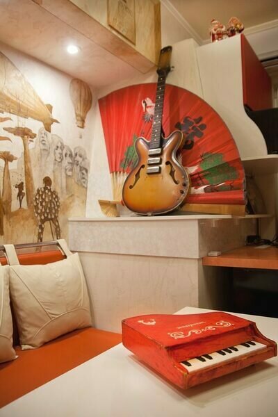 Весь антураж выдержан в музыкальном стиле. Номера в своём оформлении посвящены музыкальным стилям и отдельным музыкантам, таким как Elvis Presley, Bob Marley, The Beatles и др. С потолка вам будут светить гитары и барабаны, чай вы будете пить из кружек с нотками, помешивая ложечкой с ручкой в виде музыкальных инструментов.