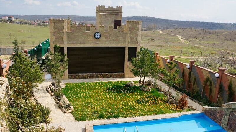 Здание в виде крепости,* Море/магазины - 15 мин. пешком (900м.), (песчано галечные протяжённые пляжи), * уединённое местоположение, * отдельный вход на вашу территорию, * 22 спальных места, * 5 комнат, каждая с отдельным входом со двора (4 комнаты - 4-х местных, 1 - 6-ти местная), * двуярусные кровати, постельное бельё, * кондиционер в каждой комнате, * горячая вода - бойлер, * вода из собственной скважины глубиной 49 метров, * Wi-Fi, * стоянка авто у входа на вашу территорию.