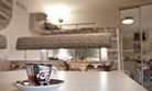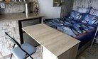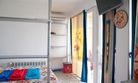 8 кв.м., двуспальный раскладной диван с вмонтированным в спинку мини баром, откидывающимся в столик, с\у на этаже, кухонный уголок с холодильником, микроволновкой и чайником, вся необходимая посуда, шкаф, телевизор 3D smart, балкон двухъярусный 8, 5 кв.м., оборудован столом, cтульями, верхний ярус оборудован подушками для сидения и столиком, может раскладываться в спальное место на свежем воздухе.
