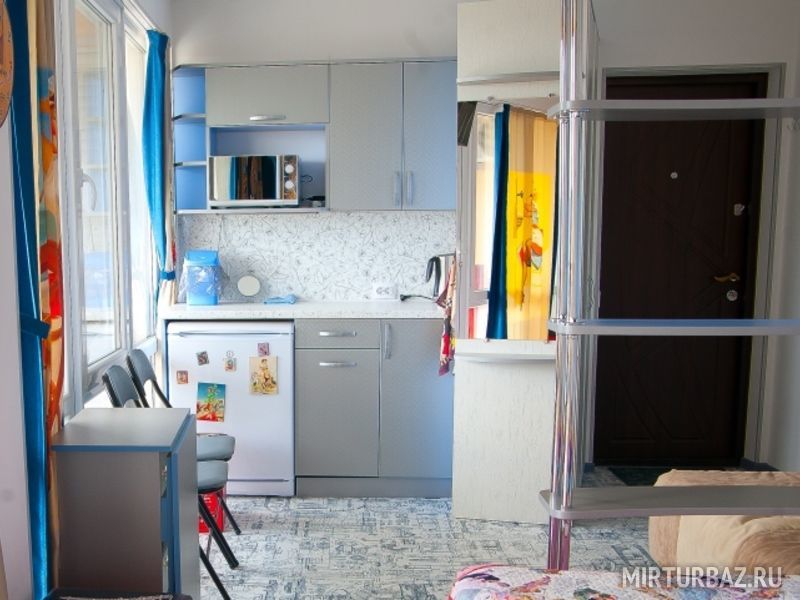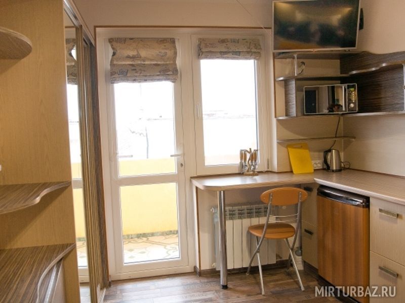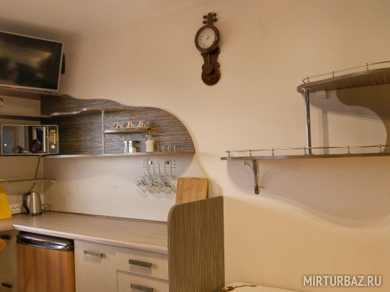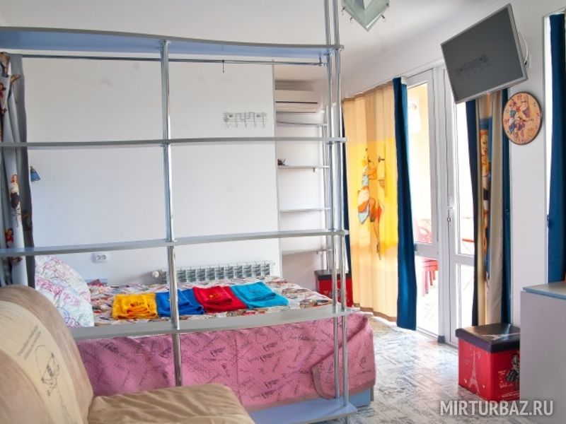 Апартаменты № 11, - 22 кв.м. двуспальная кровать и односпальная кровать вторым этажом, с\у в номере, кухонный уголок с холодильником микроволновкой и чайником, вся необходимая посуда, балкон 7 кв.м., номер расположен в отдельном строении, отапливается и охлаждается кондиционером. Самый уединённый и просторный номер. Шкаф - гардеробная, телевизор 3D smart.