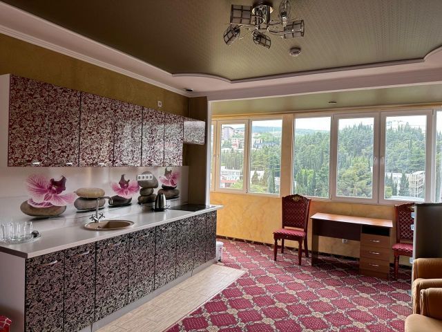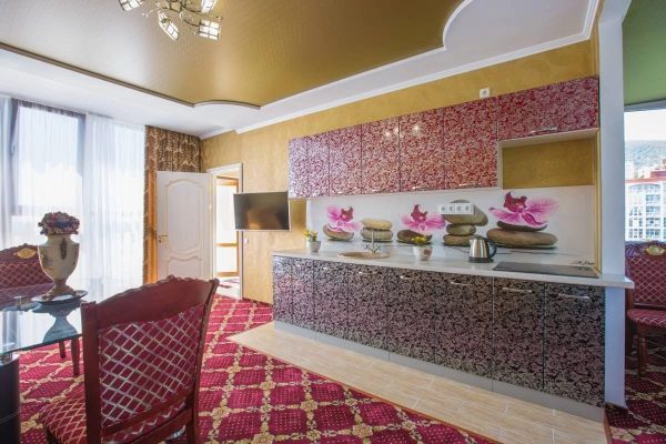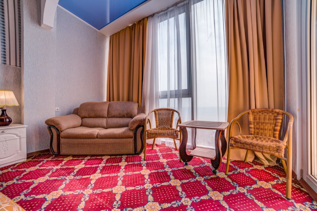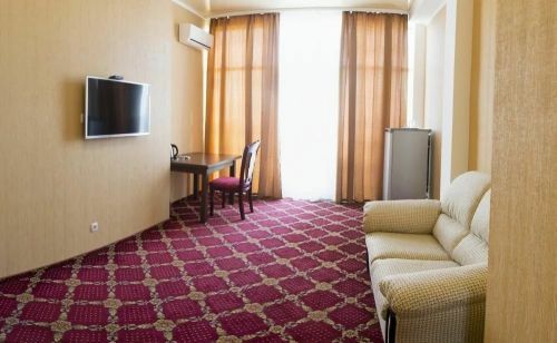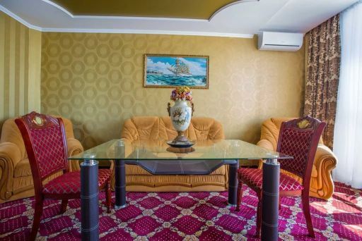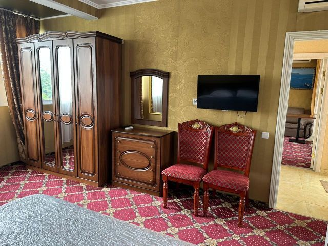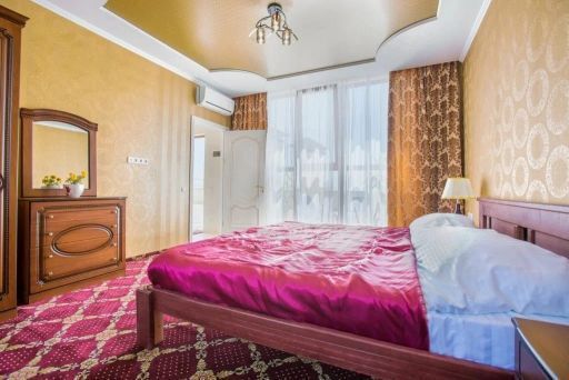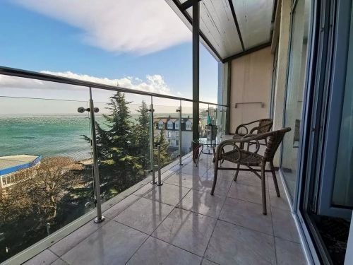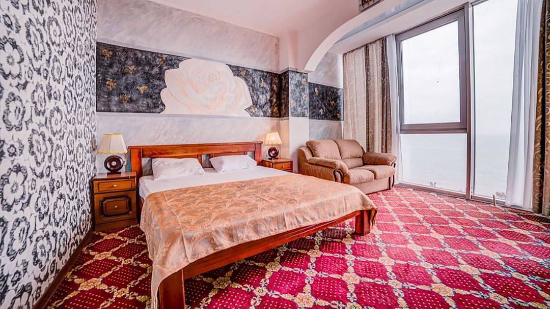 Двухкомнатный номер повышенной категории с собственным балконом-террасой площадью 80 м2. Расположенный на 8-м этаже отеля с шикарным видом на море и набережную. Номер оснащен мебелью из натурального дерева.