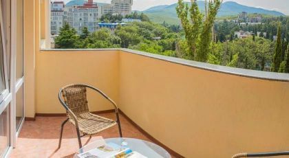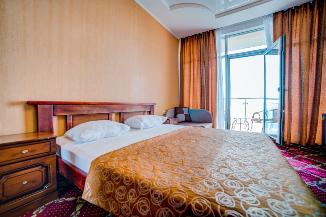 Однокомнатные номера с балконом площадью 20-25 м2. Расположены на 2- 7 этажах. Из всех номеров открывается прекрасный вид на море. Каждый номер оснащен мебелью из натурального дерева.