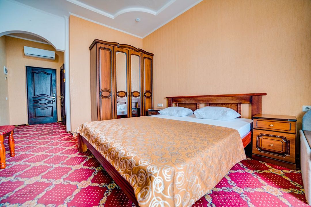 Однокомнатные комфортабельные номера категории полулюкс без балкона площадью 20-25 м2 с видом на горы. Расположены на 3-5 этажах отеля. Каждый номер оснащен мебелью из натурального дерева.