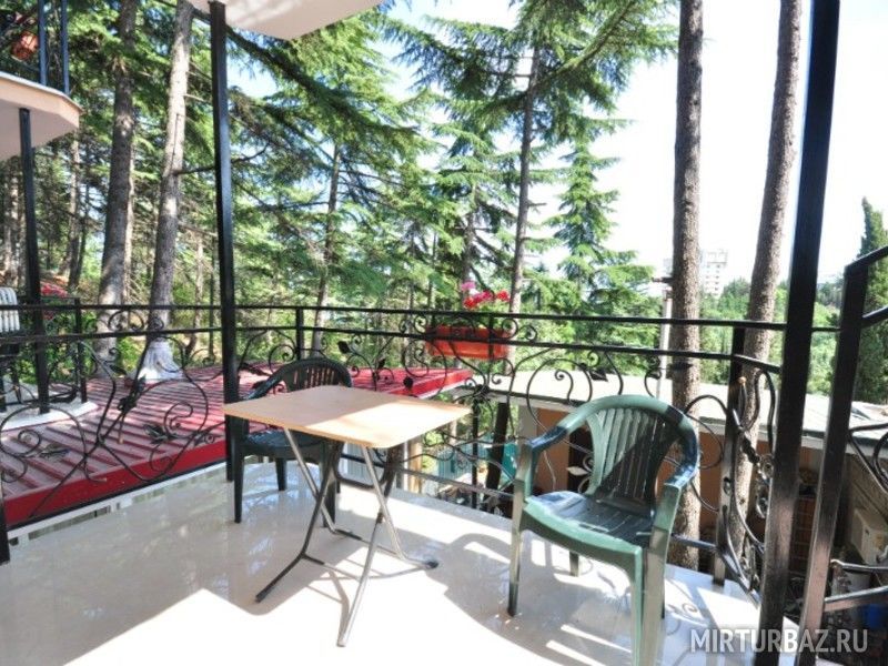 В номере: диван, холодильник, телевизор, кондиционер, балкон с видом на горы, санузел. Имеется балкон со столом и стульями площадью 9 кв. м. Холодная и горячая вода подается круглосуточно. Уборка в номерах осуществляется 3 раза в неделю. Замена постельного белья - каждые 5 дней.