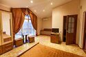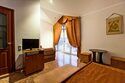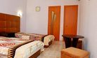Двуспальная кровать, платяной шкаф с зеркалом, кондиционер, тумбочки, холодильник, телевизор (спутниковое телевидение), мягкий диван, санузел (душевая кабина с постоянной холодной и горячей фильтрованной водой, туалет, умывальник), интернет. Номера идут с видом на бассейн.