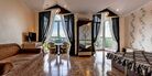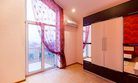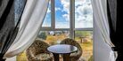 Первая комната: двуспальная кровать, большой шкаф/гардероб с зеркалом, панорамные окна с видом на природу.