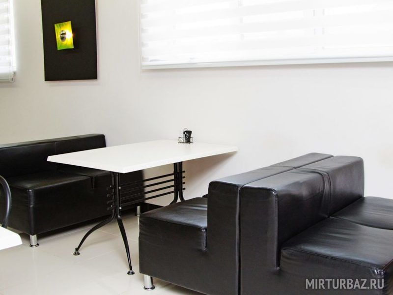 Вторая комната: мягкая мебель, телевизор, кондиционер, холодильник, санузел (душевая кабина с постоянной холодной и горячей фильтрованной водой, туалет, умывальник, фен), постельное белье. Номера идут с видом на бассейн.