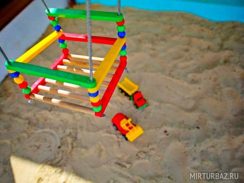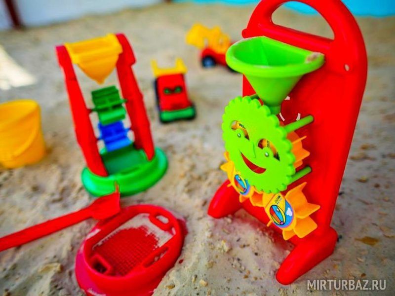 На территории для маленьких гостей подготовлена детская площадка с качелей, игрушками, большой песочницей. Оформлена яркими красками и рисунками. Чем полезна детская площадка?