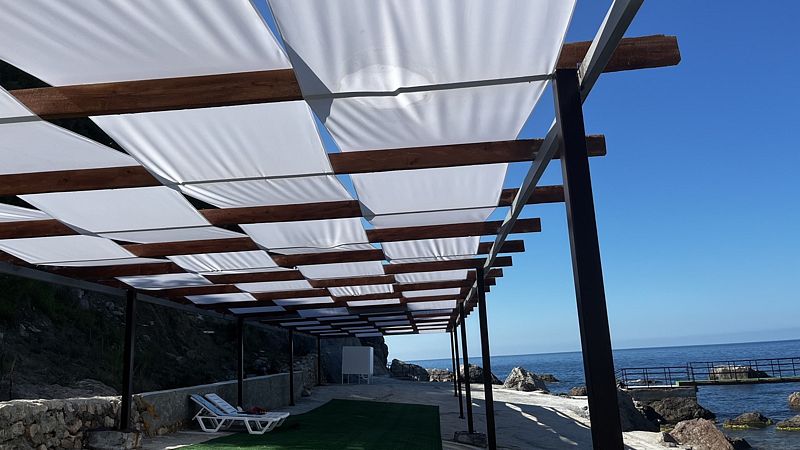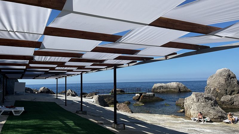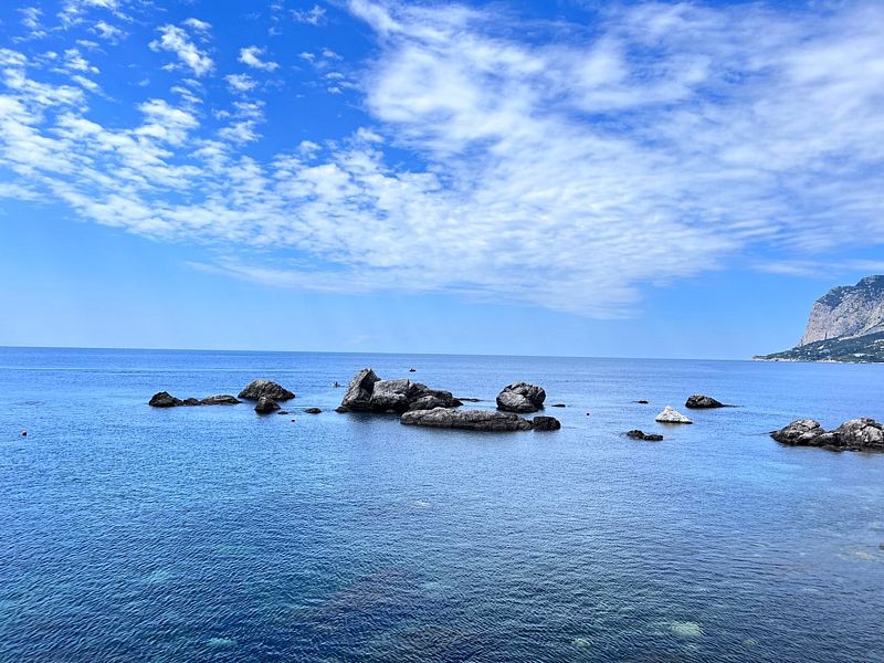 Море рядом, чистое. Лежаков полно. Бывают медузы. Бассейнов нет. Очень красиво. Море, горы, выступающие из воды огромные камни завораживает. Воздух чистейший.