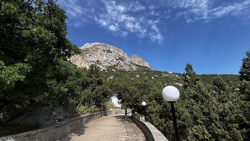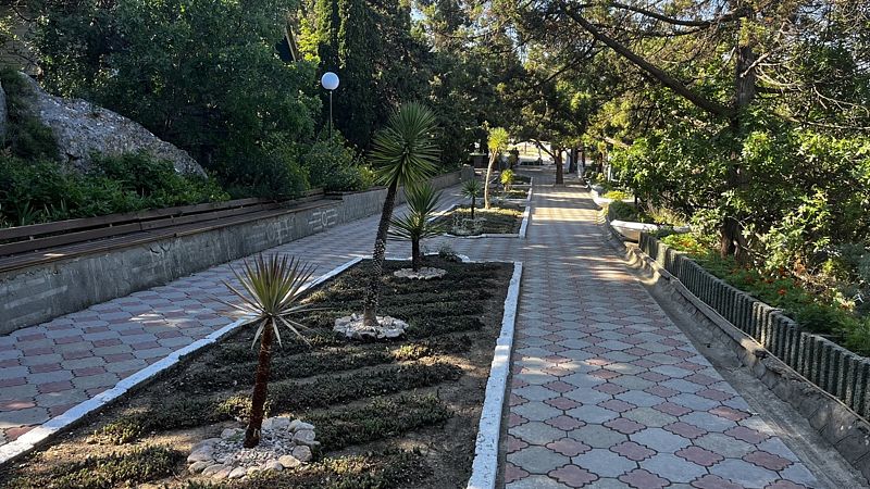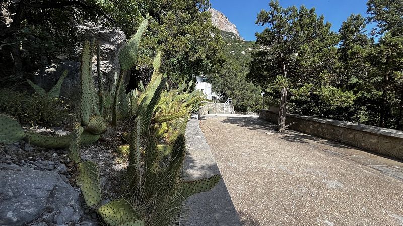 На территории много деревьев. Голосят цикады. Значительная часть территории окружена забором, там 5 недостроев и, судя по карте, когда-то запланированные бассейны.