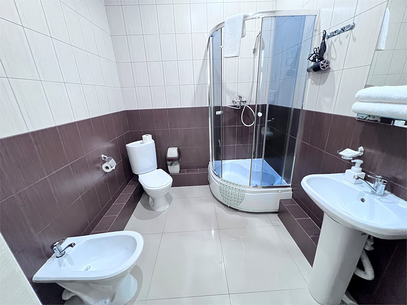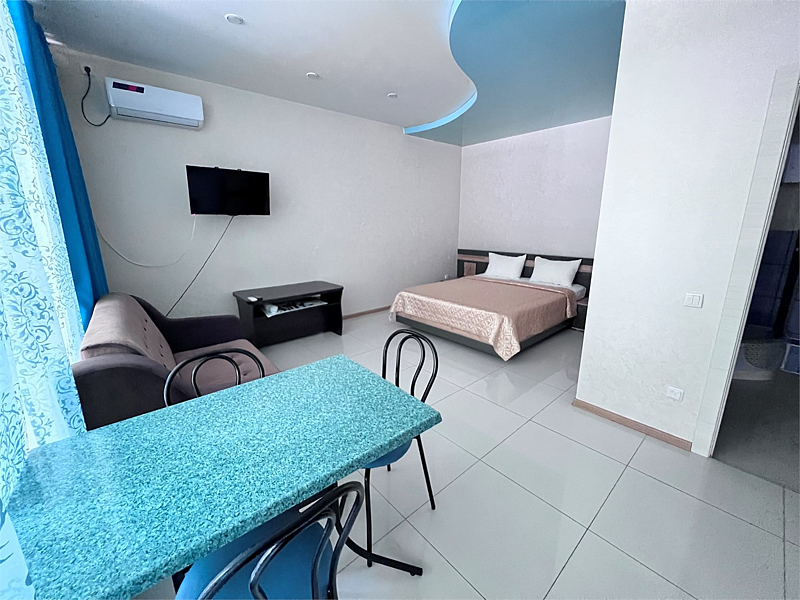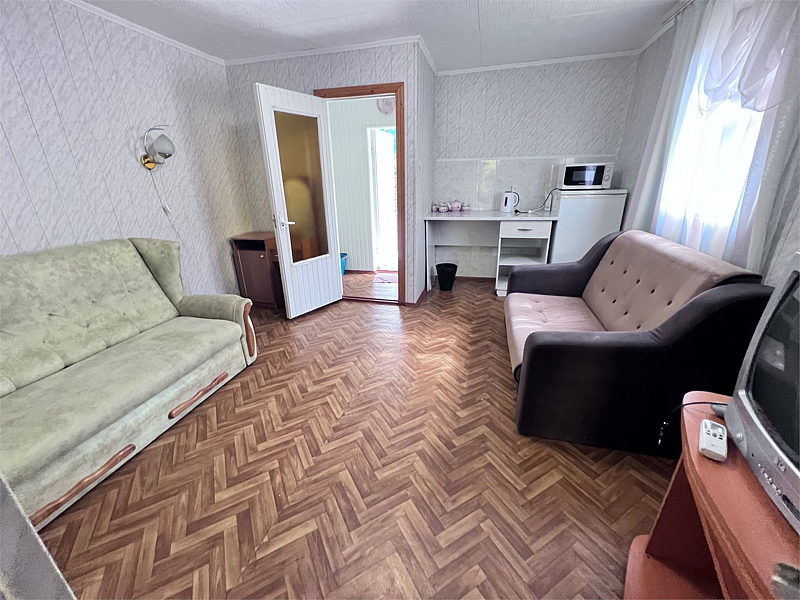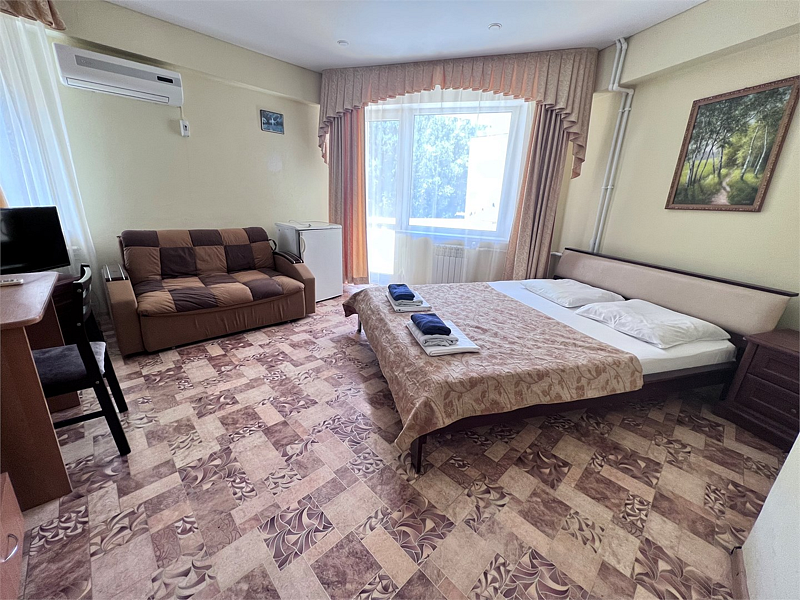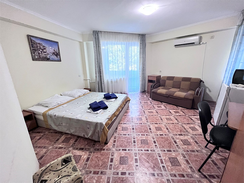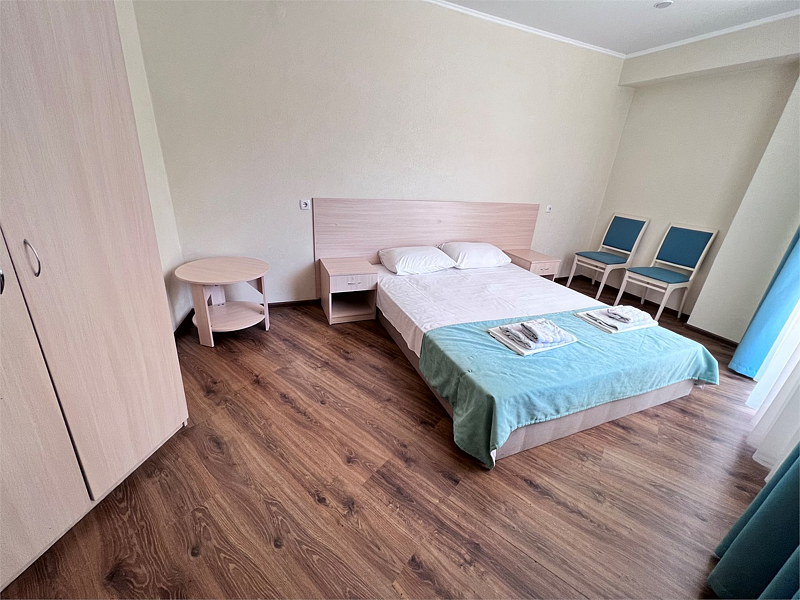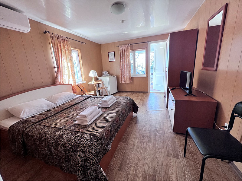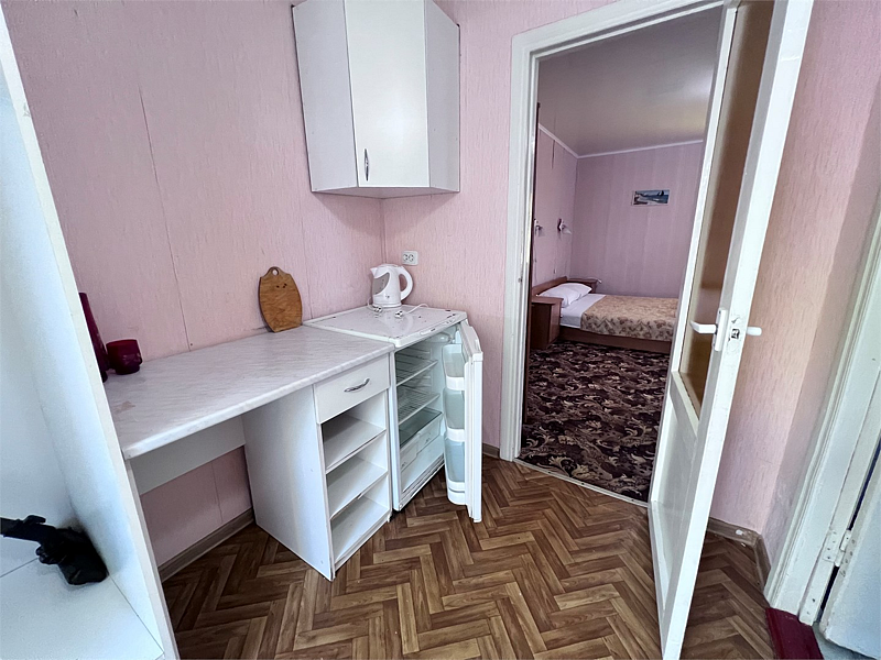 Однокомнатные номера расположены в Третьем корпусе пансионата на первой береговой линии возле пляжа «Министерский». 1-комнатный 2-местный номер со всеми удобствами.