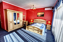В номере две кровати типа «коннект» (можно сдвигать), телевизор, холодильник, кондиционер, прикроватные тумбочки, платяной шкаф, комод, ламинат, санузел (туалет, умывальник, душ). Балкон с видом на море.