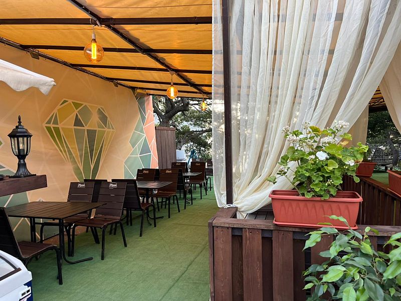 Кафе возле самого моря «Эйва в Изумруде». Здесь сочное мясо на мангале: шашлыки, люля-кебаб, стейки, бургеры, шаверма. Есть первые и детские блюда.